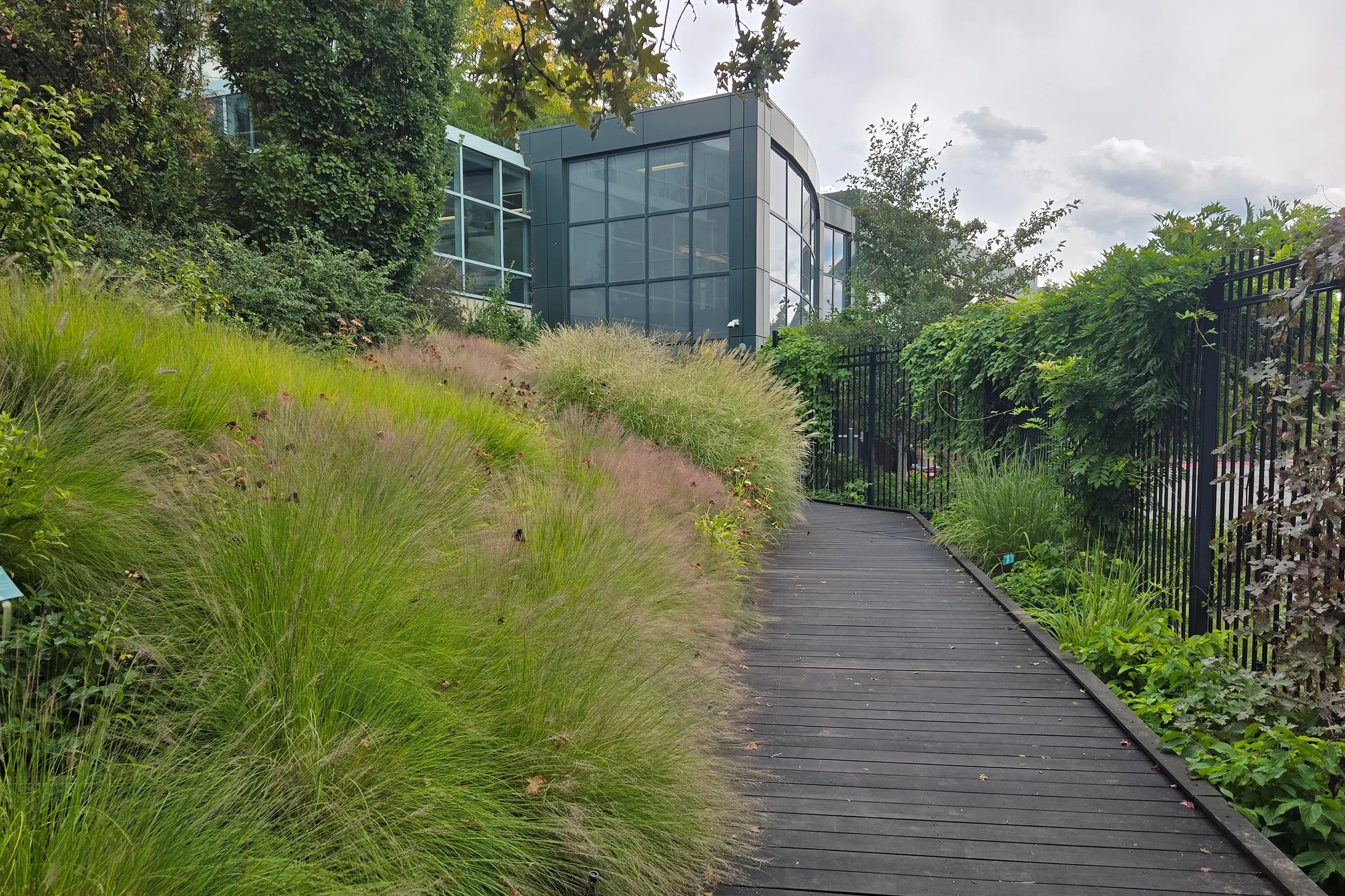 My next stop was Little island situated at pier 55, a former pier that’s been redesigned into a garden and a performance site. It is a beautiful floating park over the waters. The landscaping was absolutely magnificent offering different levels of spectacular views of the city and harbor. Little Island also has a rich variety of botanical plants which are nicely planned along the paths, stairs, or boulders. The whole park landscape is supported by precast concrete pots or columns going below the water. I was also driven towards the unique signage system designed for the park fabricated out of Corten panels and cut through typography very simple and blending completely into the landscape. This park has a common public space in the center for small events, food court area and play area for kids.
