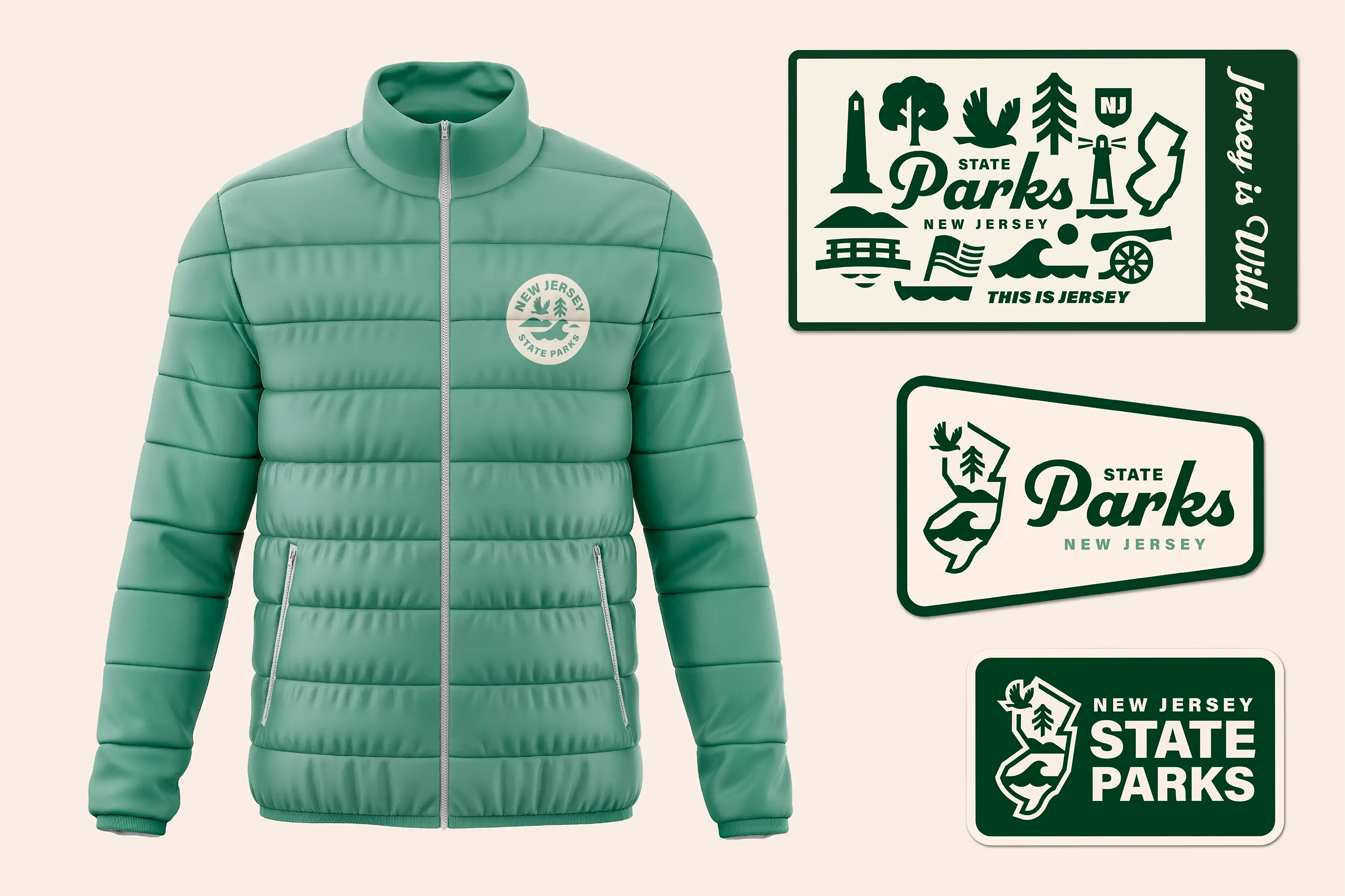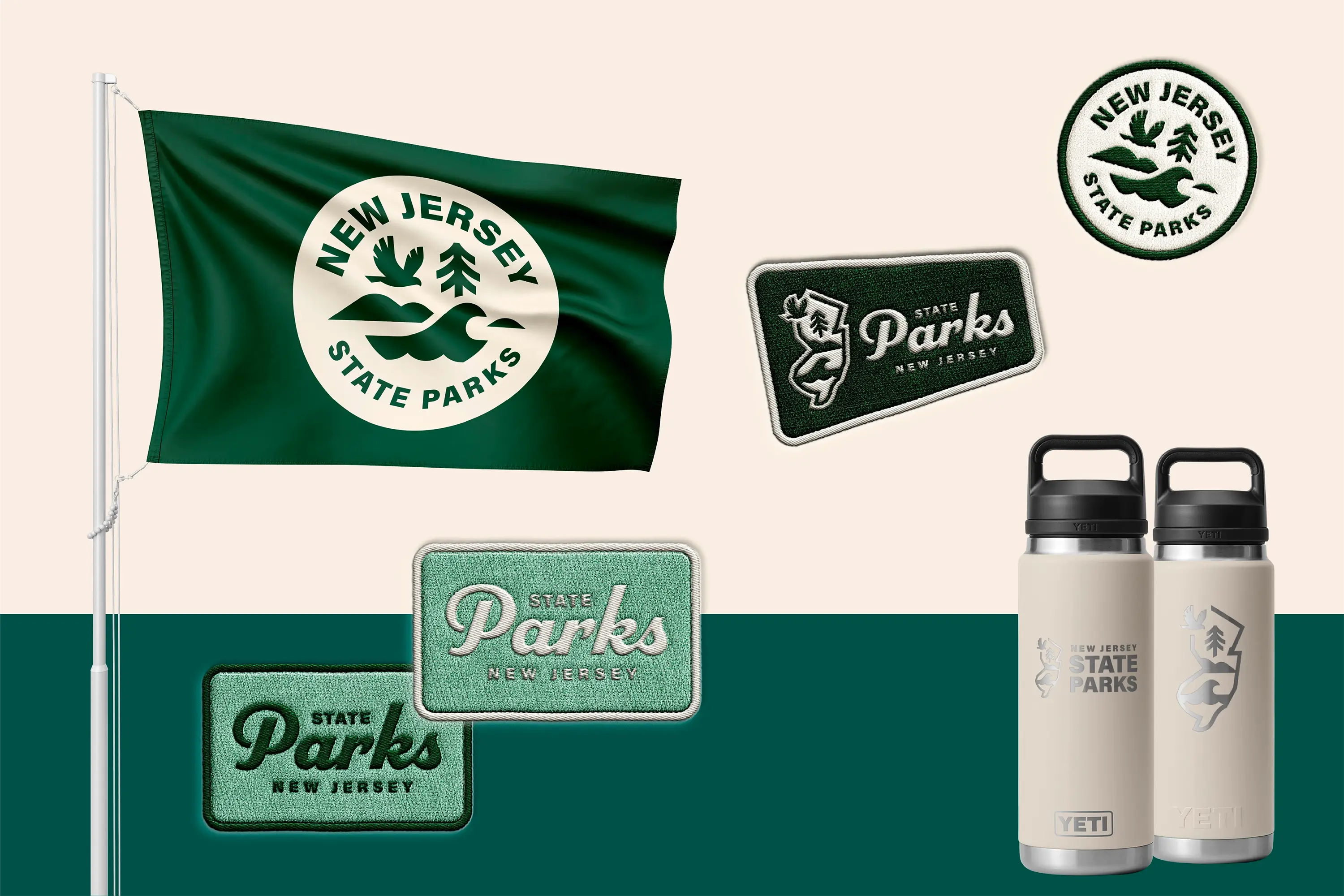 The new visual identity for NJSP brings together wildlife, trees, mountains, and waves into a network of unified marks that symbolize the breadth of New Jersey’s landscapes and the diversity of experiences found within its parks.